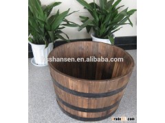 Outdoor roun garden wooden flower planter with hoop ironDetails
